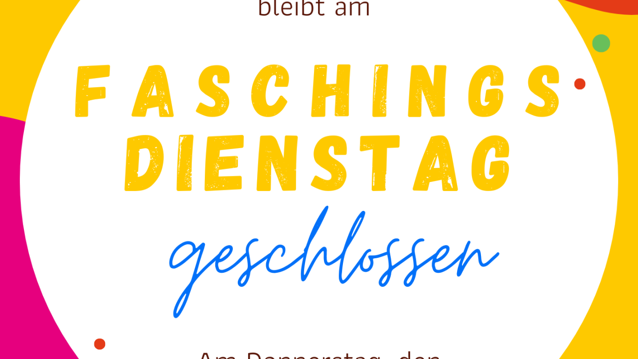 Februar, 2026 Faschingsdienstag geschlossen Die Bücherei Tosters bleibt am Faschingsdienstag, den 17. 02. 2026 geschlossen.Gerne sind wir am Donnerstag, den 19.02.2026 von 17:00 bis 19:00 Uhr wieder für euch da.